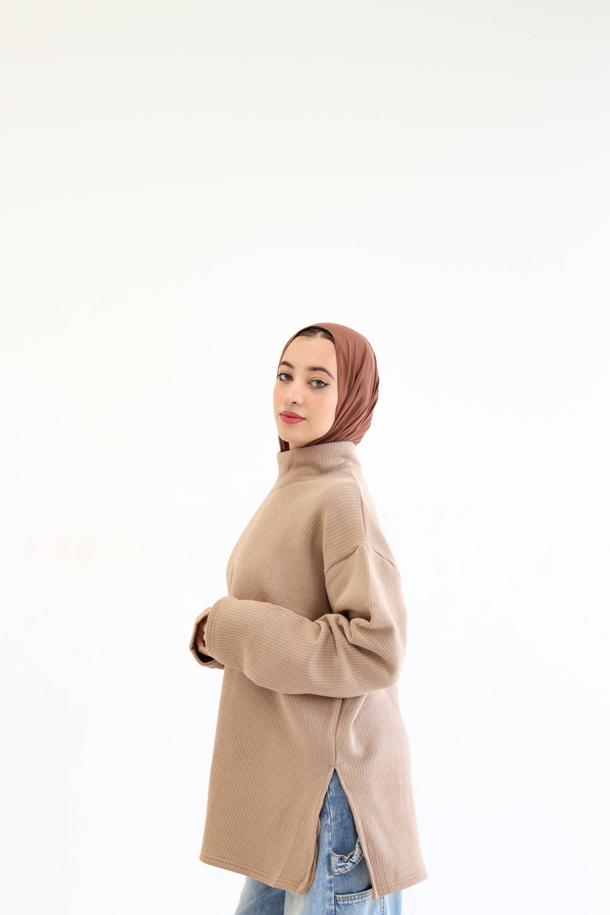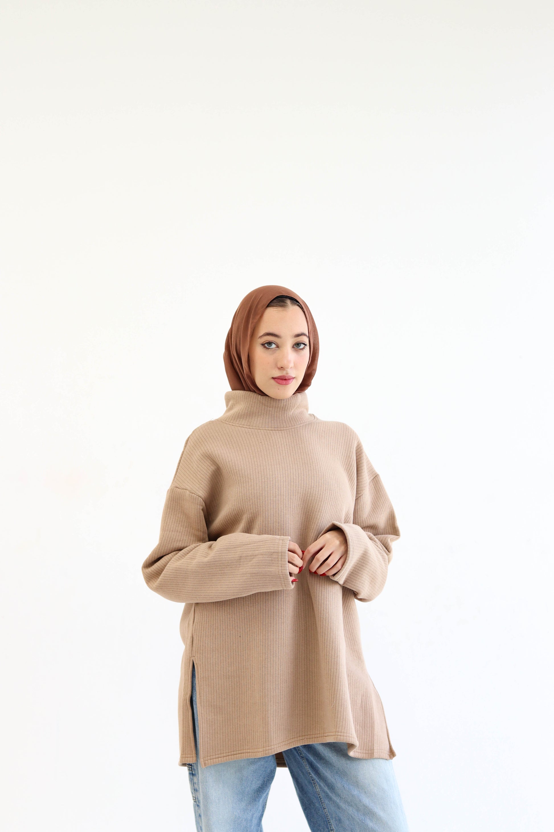 Beige high neck sweater